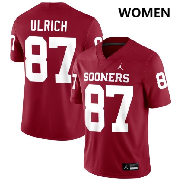 • Women Jacob Ulrich Crimson Boomer Sooner College Football #87 Jersey